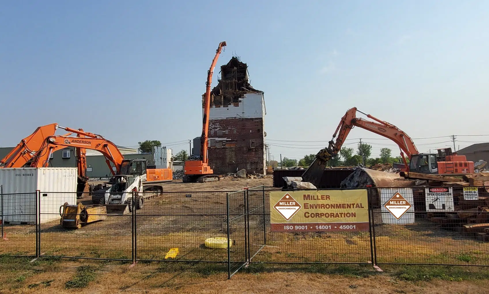 Working alongside a demolition company, Miller coordinated the phased dismantling of the elevator structure. Crews developed a site-specific plan to manage confined space hazards, ensure structural stability during teardown, and prevent the spread of dust and debris. Utilities were disconnected in partnership with Manitoba Hydro, city water services, and the Winnipeg Fire Department.